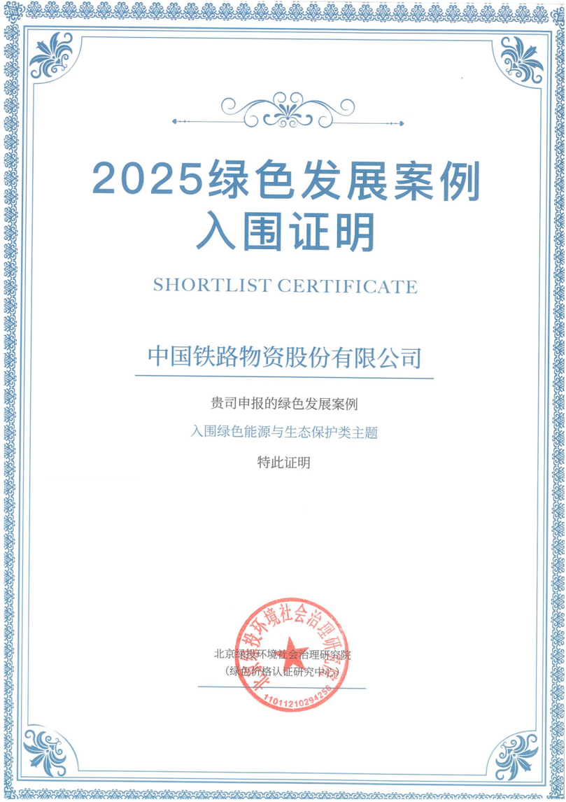 11月2日,在由國(guó)家發(fā)展和改革委員會(huì)價(jià)格成本和認(rèn)證中心指導(dǎo)下,北京ESG研究院主辦的“智賦新篇 綠啟華章 2025年綠色發(fā)展案例成果發(fā)布會(huì)”上,中國(guó)鐵物申報(bào)的ESG綠色發(fā)展案例《構(gòu)建綠色供應(yīng)鏈體系 助推行業(yè)低碳轉(zhuǎn)型》,成功入選“2025年綠色發(fā)展案例”。